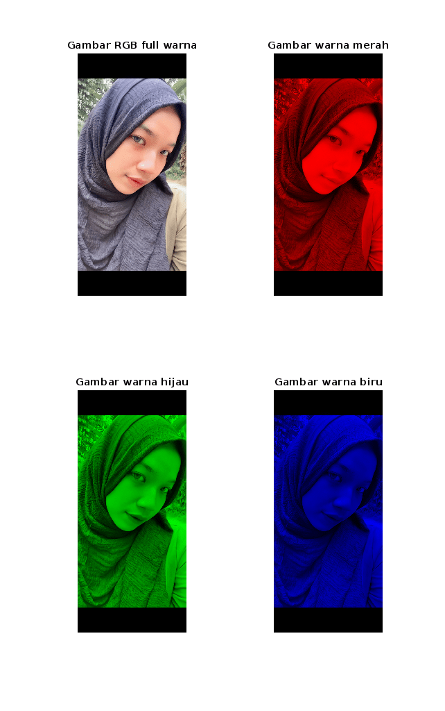 %Script untuk merepresentasikan citra RGB beserta masing-masing kanal warna nya yaitu: