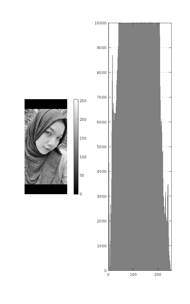 Berikut ini merupakan representasi citra dan histogramnya: